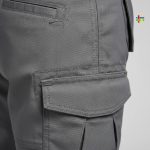 This men’s workwear cargo pant features a 6-pocket functional design, allowing workers to conveniently carry tools, devices, notebooks, gloves, and personal items while on duty. Two side cargo pockets with flap closure provide secure storage, while additional front and back pockets enhance usability in active work conditions. The pocket placement is carefully designed to maintain balance and comfort during movement.